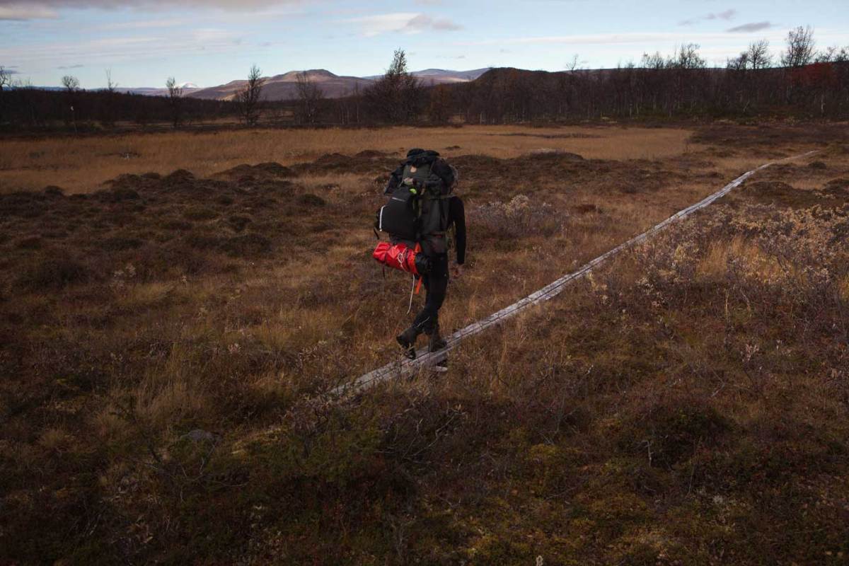 Auf der Karte und den Satellitenbildern sah diese Route aus wie die reinste Traumtour. Von Ammarnäs in zwei Tagen in das Tal des Dellikälven und von dort mit dem Packraft flussabwärts. Weiter in den unteren Lauf des Laisälven, in den Vindelälven und zurück nach Sorsele. In der Realität sah es leider anders aus. Das wenige Wasser aufgrund der Jahreszeit und des trockenen Sommers war gar nicht so sehr das Problem. Eher die langen und schwierigen Stromschnellen, die eine Befahrung des Flusses mit schwerem Gepäck außerordentlich kompliziert machten. Also hieß es viel Umtragen. Durch unwegsames, felsiges, sumpfiges Gelände. Und dann ein kleiner Ausrutscher, ein kleiner Stein am falschen Platz, ein gebrochener Fuß und die Tour endet mit einem Helikopterflug.